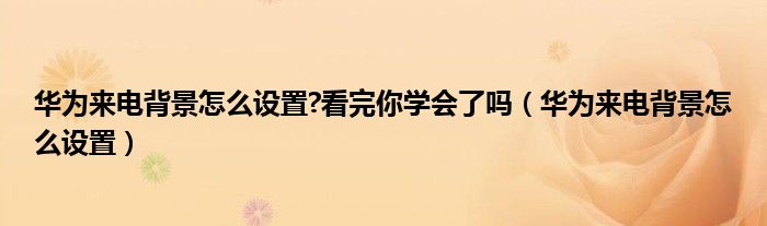 大家好,小晋来为大家解答以下问题,关于华为来电背景怎么设置?看完你学会了吗,华为来电背景怎么设置很多人还不知道,今天让我们一起来看看吧!