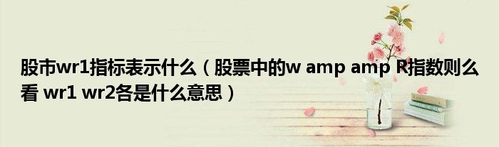 关于股市wr1指标表示什么,股票中的w amp amp R指数则么看 wr1 wr2各是什么意思这个很多人还不知道,今天菲菲来为大家解答以上的问题,现在让我们一起来看看吧!