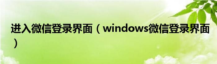 进入微信登录界面(windows微信登录界面)