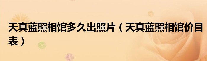 关于天真蓝照相馆多久出照片,天真蓝照相馆价目表这个很多人还不知道,今天菲菲来为大家解答以上的问题,现在让我们一起来看看吧!