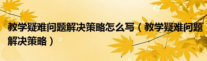 关于教学疑难问题解决策略怎么写,教学疑难问题解决策略这个很多人还不知道,今天菲菲来为大家解答以上的问题,现在让我们一起来看看吧!