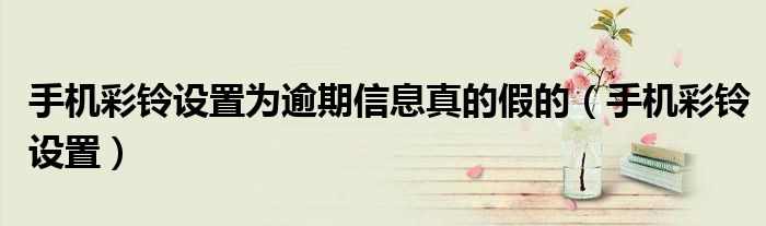 大家好,小晋来为大家解答以下问题,关于手机彩铃设置为逾期信息真的假的,手机彩铃设置很多人还不知道,今天让我们一起来看看吧!