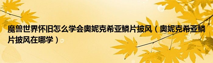 关于魔兽世界怀旧怎么学会奥妮克希亚鳞片披风,奥妮克希亚鳞片披风在哪学这个很多人还不知道,今天菲菲来为大家解答以上的问题,现在让我们一起来看看吧!