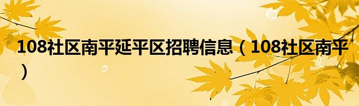 108社区南平延平区招聘信息(108社区南平)