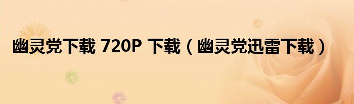 关于幽灵党下载 720P 下载,幽灵党迅雷下载这个很多人还不知道,今天菲菲来为大家解答以上的问题,现在让我们一起来看看吧!