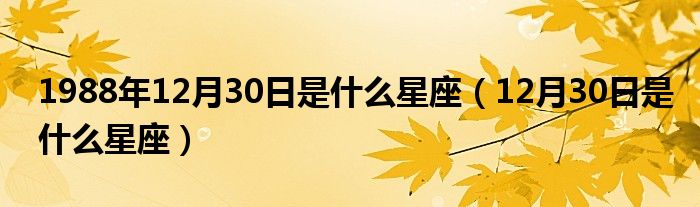 关于1988年12月30日是什么星座,12月30日是什么星座这个很多人还不知道,今天菲菲来为大家解答以上的问题,现在让我们一起来看看吧!