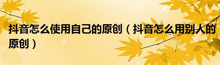 大家好,小晋来为大家解答以下问题,关于抖音怎么使用自己的原创,抖音怎么用别人的原创很多人还不知道,今天让我们一起来看看吧!