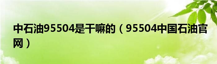关于中石油95504是干嘛的,95504中国石油官网这个很多人还不知道,今天菲菲来为大家解答以上的问题,现在让我们一起来看看吧!