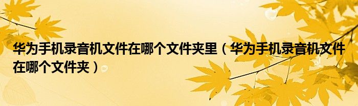 关于华为手机录音机文件在哪个文件夹里,华为手机录音机文件在哪个文件夹这个很多人还不知道,今天菲菲来为大家解答以上的问题,现在让我们一起来看看吧!