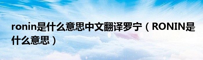 关于ronin是什么意思中文翻译罗宁,RONIN是什么意思这个很多人还不知道,今天菲菲来为大家解答以上的问题,现在让我们一起来看看吧!