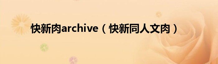 关于快新肉archive,快新同人文肉这个很多人还不知道,今天菲菲来为大家解答以上的问题,现在让我们一起来看看吧!