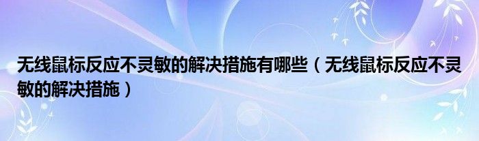 关于无线鼠标反应不灵敏的解决措施有哪些,无线鼠标反应不灵敏的解决措施这个很多人还不知道,今天菲菲来为大家解答以上的问题,现在让我们一起来看看吧!