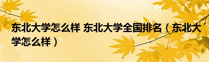 关于东北大学怎么样 东北大学全国排名,东北大学怎么样这个很多人还不知道,今天菲菲来为大家解答以上的问题,现在让我们一起来看看吧!