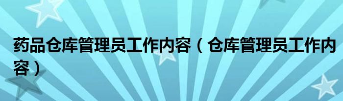 关于药品仓库管理员工作内容,仓库管理员工作内容这个很多人还不知道,今天菲菲来为大家解答以上的问题,现在让我们一起来看看吧!
