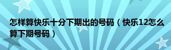 怎样算快乐十分下期出的号码(快乐12怎么算下期号码)