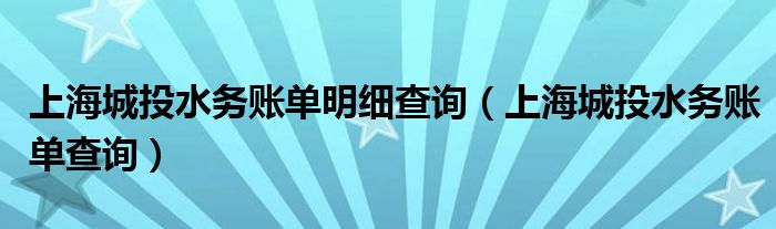 关于上海城投水务账单明细查询,上海城投水务账单查询这个很多人还不知道,今天菲菲来为大家解答以上的问题,现在让我们一起来看看吧!