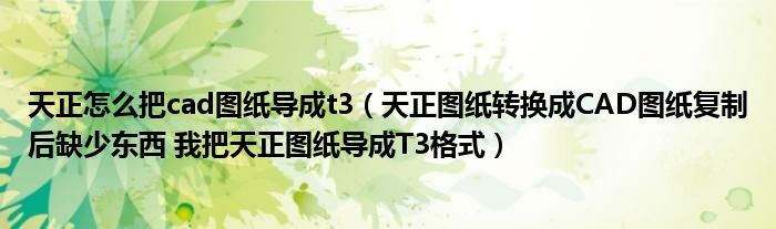 关于天正怎么把cad图纸导成t3,天正图纸转换成CAD图纸复制后缺少东西 我把天正图纸导成T3格式这个很多人还不知道,今天菲菲来为大家解答以上的问题,现在让我们一起来看看吧!