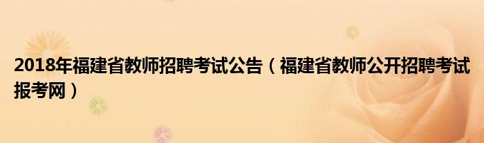 关于2018年福建省教师招聘考试公告,福建省教师公开招聘考试报考网这个很多人还不知道,今天菲菲来为大家解答以上的问题,现在让我们一起来看看吧!
