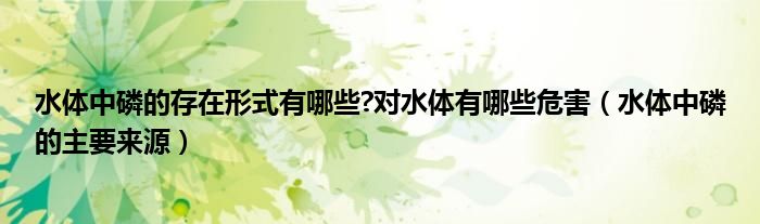 关于水体中磷的存在形式有哪些?对水体有哪些危害,水体中磷的主要来源这个很多人还不知道,今天菲菲来为大家解答以上的问题,现在让我们一起来看看吧!