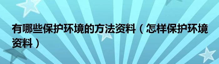 关于有哪些保护环境的方法资料,怎样保护环境 资料这个很多人还不知道,今天菲菲来为大家解答以上的问题,现在让我们一起来看看吧!