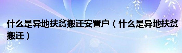 关于什么是异地扶贫搬迁安置户,什么是异地扶贫搬迁这个很多人还不知道,今天菲菲来为大家解答以上的问题,现在让我们一起来看看吧!