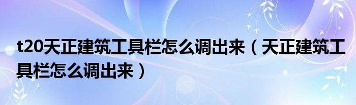 关于t20天正建筑工具栏怎么调出来,天正建筑工具栏怎么调出来这个很多人还不知道,今天菲菲来为大家解答以上的问题,现在让我们一起来看看吧!