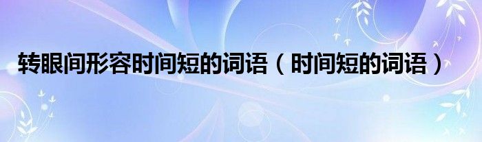 关于转眼间形容时间短的词语,时间短的词语这个很多人还不知道,今天菲菲来为大家解答以上的问题,现在让我们一起来看看吧!