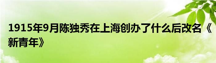 1915年9月陈独秀在上海创办了什么后改名《新青年》