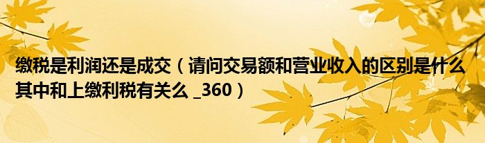 关于缴税是利润还是成交,请问交易额和营业收入的区别是什么 其中和上缴利税有关么 _360这个很多人还不知道,今天菲菲来为大家解答以上的问题,现在让我们一起来看看吧!