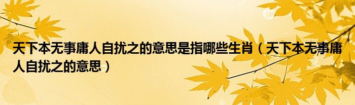 关于天下本无事庸人自扰之的意思是指哪些生肖,天下本无事庸人自扰之的意思这个很多人还不知道,今天菲菲来为大家解答以上的问题,现在让我们一起来看看吧!