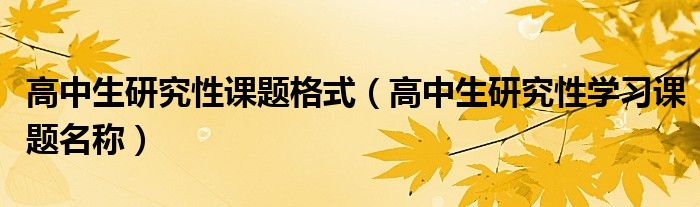 关于高中生研究性课题格式,高中生研究性学习课题名称这个很多人还不知道,今天菲菲来为大家解答以上的问题,现在让我们一起来看看吧!