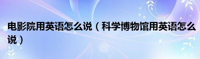 关于电影院用英语怎么说,科学博物馆用英语怎么说这个很多人还不知道,今天菲菲来为大家解答以上的问题,现在让我们一起来看看吧!