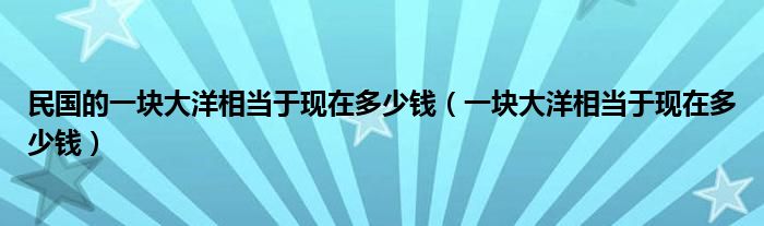 关于民国的一块大洋相当于现在多少钱,一块大洋相当于现在多少钱这个很多人还不知道,今天菲菲来为大家解答以上的问题,现在让我们一起来看看吧!