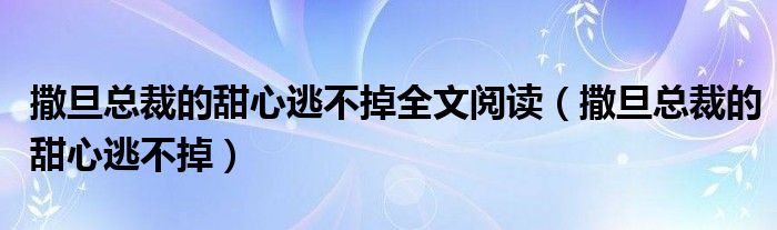 关于撒旦总裁的甜心逃不掉全文阅读,撒旦总裁的甜心逃不掉这个很多人还不知道,今天菲菲来为大家解答以上的问题,现在让我们一起来看看吧!1、美国。本文到此分享完毕,希望对大家有所帮助。