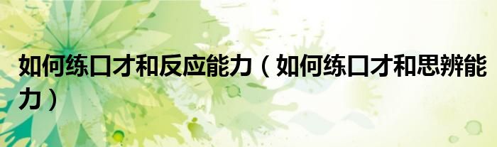 关于如何练口才和反应能力,如何练口才和思辨能力这个很多人还不知道,今天菲菲来为大家解答以上的问题,现在让我们一起来看看吧!
