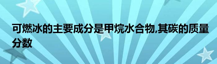 关于可燃冰的主要成分是甲烷水合物,其碳的质量分数这个很多人还不知道,今天菲菲来为大家解答以上的问题,现在让我们一起来看看吧!