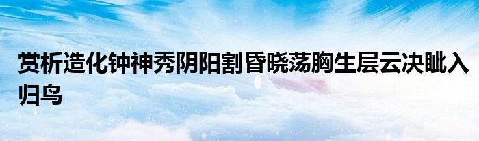 关于赏析造化钟神秀阴阳割昏晓荡胸生层云决眦入归鸟这个很多人还不知道,今天菲菲来为大家解答以上的问题,现在让我们一起来看看吧!