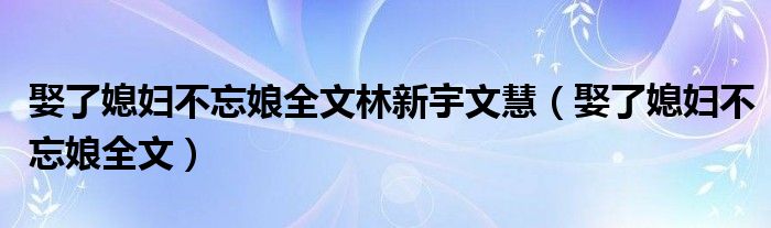 关于娶了媳妇不忘娘全文林新宇文慧,娶了媳妇不忘娘全文这个很多人还不知道,今天菲菲来为大家解答以上的问题,现在让我们一起来看看吧!