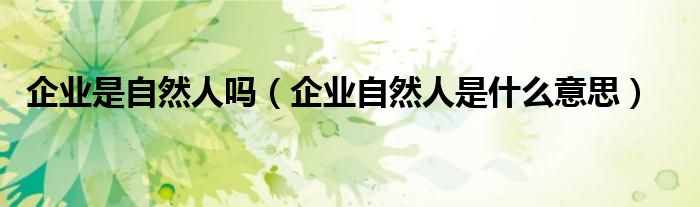 企业是自然人吗(企业自然人是什么意思)