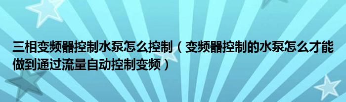 关于三相变频器控制水泵怎么控制,变频器控制的水泵怎么才能做到通过流量自动控制变频这个很多人还不知道,今天菲菲来为大家解答以上的问题,现在让我们一起来看看吧!