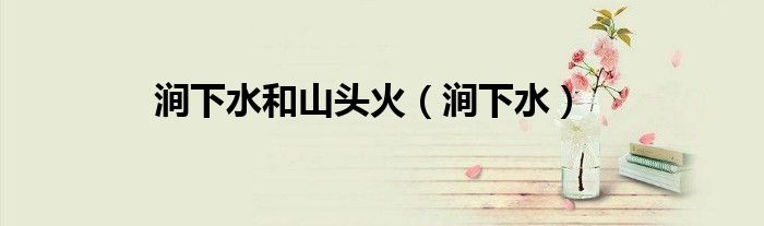 关于涧下水和山头火,涧下水这个很多人还不知道,今天菲菲来为大家解答以上的问题,现在让我们一起来看看吧!