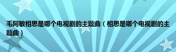 关于毛阿敏相思是哪个电视剧的主题曲,相思是哪个电视剧的主题曲这个很多人还不知道,今天菲菲来为大家解答以上的问题,现在让我们一起来看看吧!
