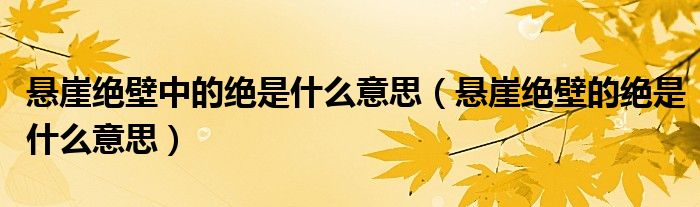 关于悬崖绝壁中的绝是什么意思,悬崖绝壁的绝是什么意思这个很多人还不知道,今天菲菲来为大家解答以上的问题,现在让我们一起来看看吧!