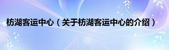 枋湖客运中心(关于枋湖客运中心的介绍)