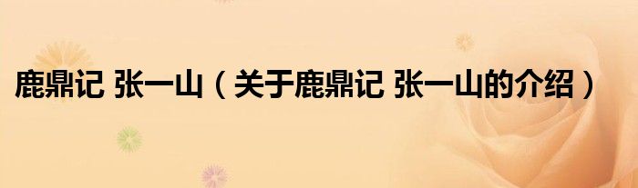 大家好,今天小乐来为大家解答以上的问题。鹿鼎记 张一山,关于鹿鼎记 张一山的介绍很多人还不知道,现在让我们一起来看看吧!