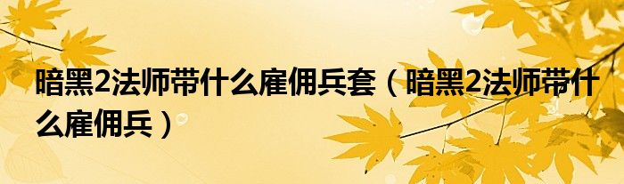 关于暗黑2法师带什么雇佣兵套,暗黑2法师带什么雇佣兵这个很多人还不知道,今天菲菲来为大家解答以上的问题,现在让我们一起来看看吧!