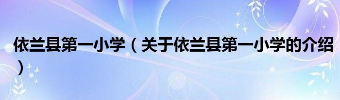 1、依兰县第一小学简介[Yilanxian Diyixiaoxue]位于东城社区文化路4号。
