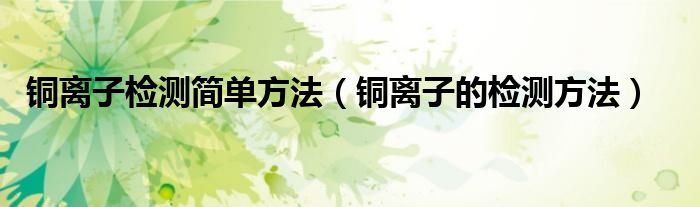 关于铜离子检测简单方法,铜离子的检测方法这个很多人还不知道,今天菲菲来为大家解答以上的问题,现在让我们一起来看看吧!