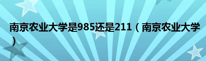 关于南京农业大学是985还是211,南京农业大学这个很多人还不知道,今天菲菲来为大家解答以上的问题,现在让我们一起来看看吧!