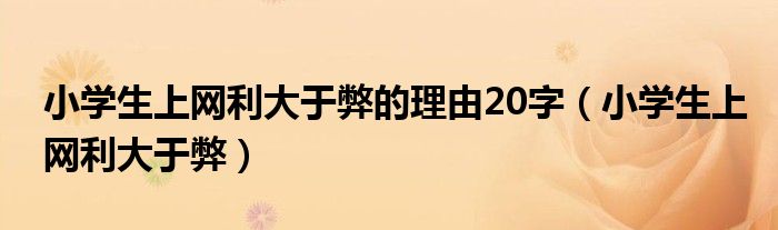关于小学生上网利大于弊的理由20字,小学生上网利大于弊这个很多人还不知道,今天菲菲来为大家解答以上的问题,现在让我们一起来看看吧!